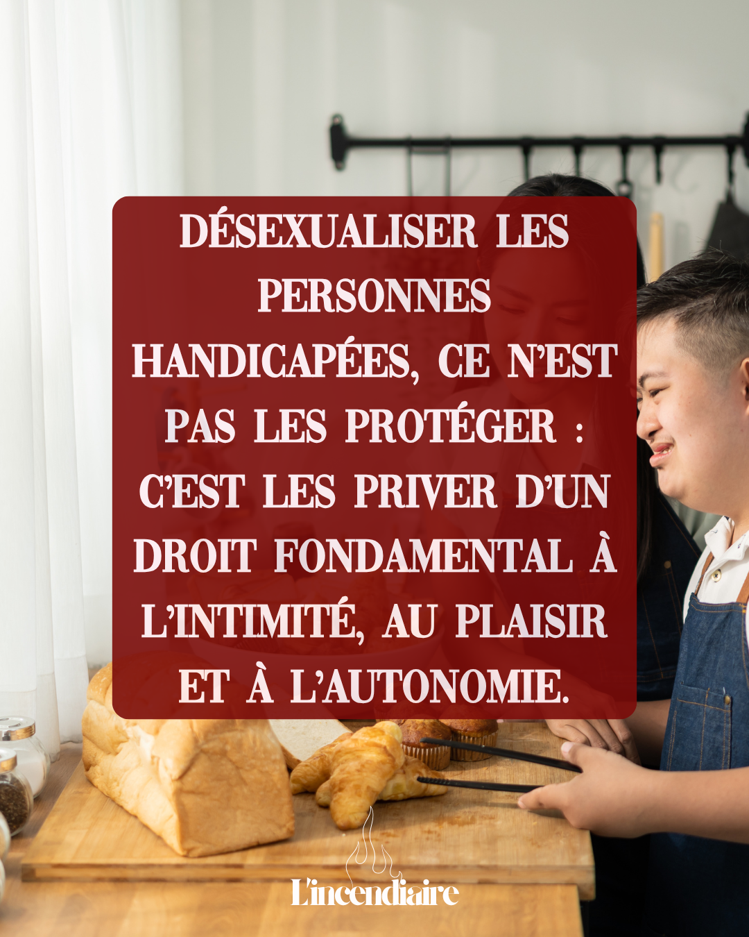 Ces réactions s’enracinent dans l’idée que la personne handi ne peut pas être un·e partenaire “désirable” ou “à égalité”.
